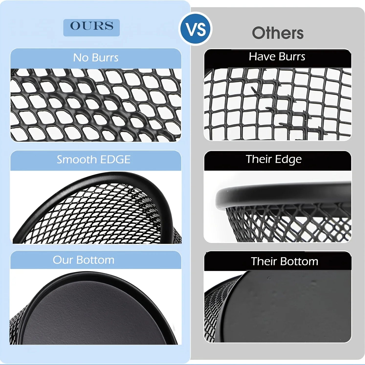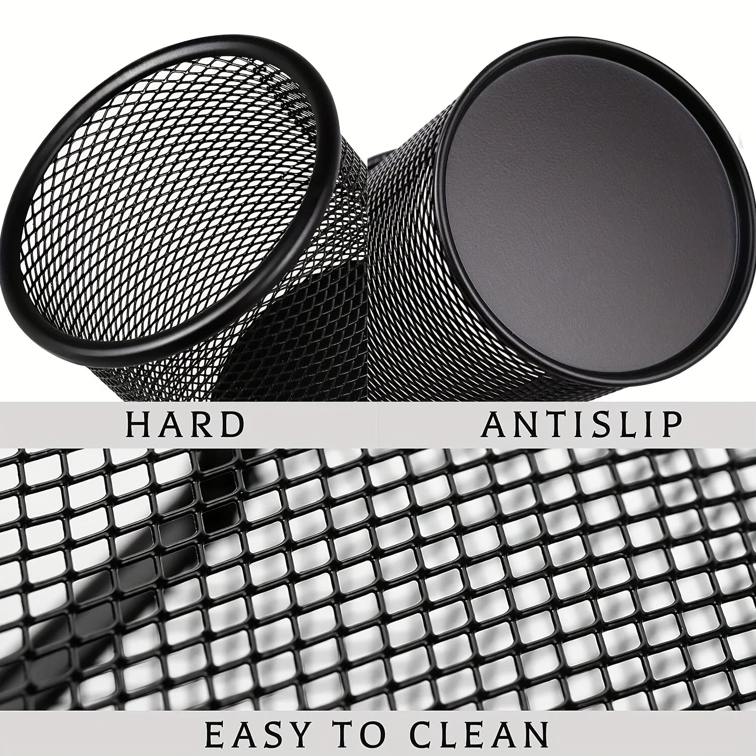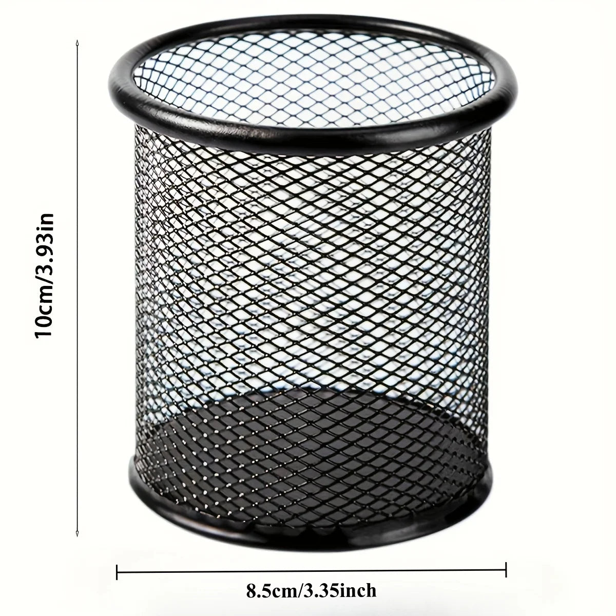4pcs Black Metal Wire Mesh Pen Holders - Round Desk Organizer with Open-Top Design, for Office & Home Desktop Storage