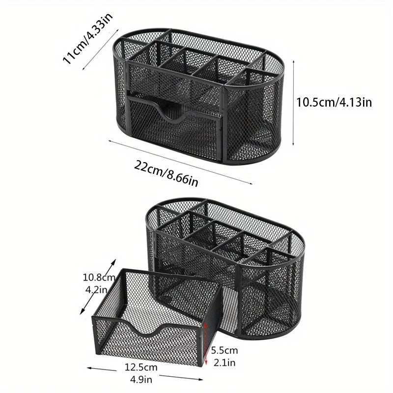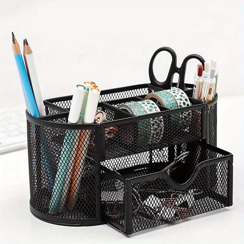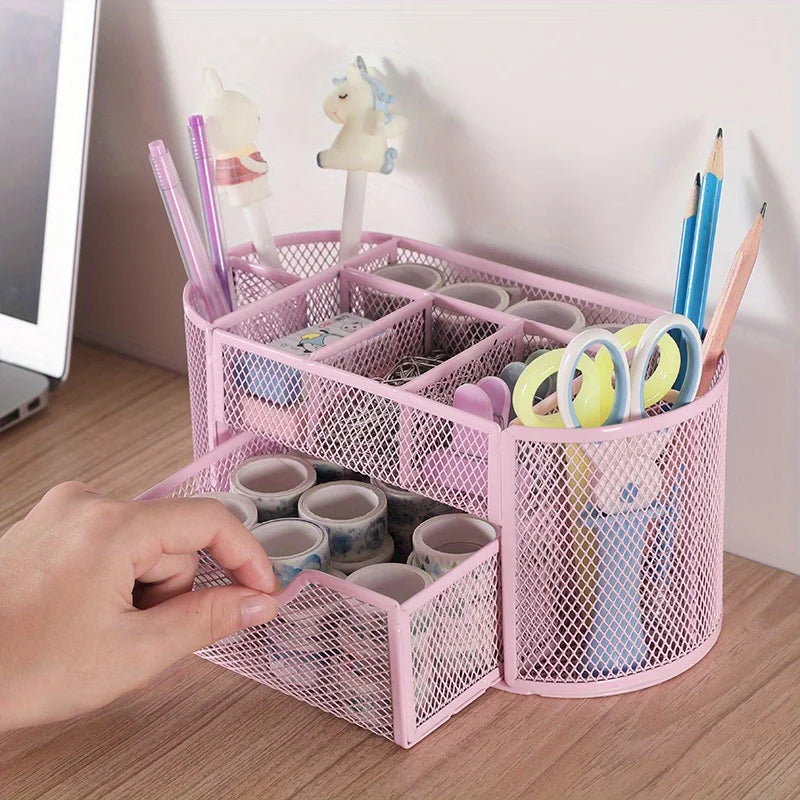 Pen Holder Large Capacity Metal Desktop Storage Box for Office and School Supplies